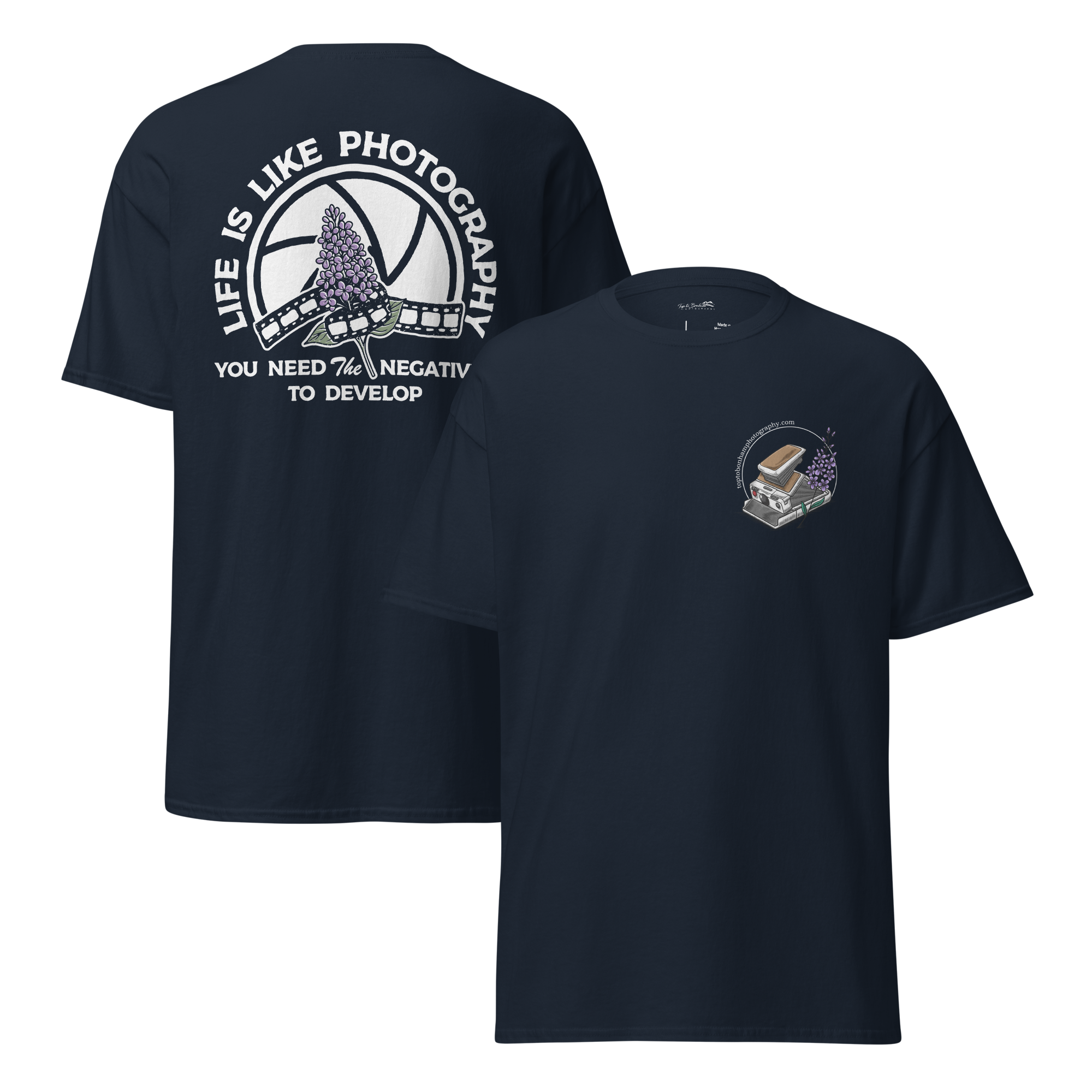 Carry your passion and positivity wherever you go. This shirt features the timeless quote "Life is like photography, you need the negatives to develop” — a perfect blend of art and motivation. Designed for photographers, dreamers, and anyone who believes growth comes from every experience. Soft cotton comfort meets a meaningful message.